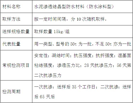 材料名稱:水泥滲透結晶型防水材料(防水涂料型)